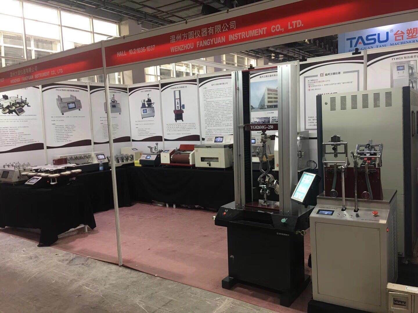 溫州方圓儀器有限公司應(yīng)展覽會(huì)主辦方邀請(qǐng),參加此次展會(huì),并實(shí)物展出了:FY600日曬氣候老化儀、YG028萬能材料試驗(yàn)機(jī)、FXC651耐折試驗(yàn)機(jī)、YG401FII織物平磨儀、XGMCIIA皮革摩擦色牢度儀、FXC621耐磨試驗(yàn)機(jī)、FXC171剝離試驗(yàn)機(jī)、FXC623鞋用纖維曲撓儀、FXC627鞋帶與鞋帶耐磨試驗(yàn)機(jī)等16種鞋類、皮革檢測(cè)儀器。